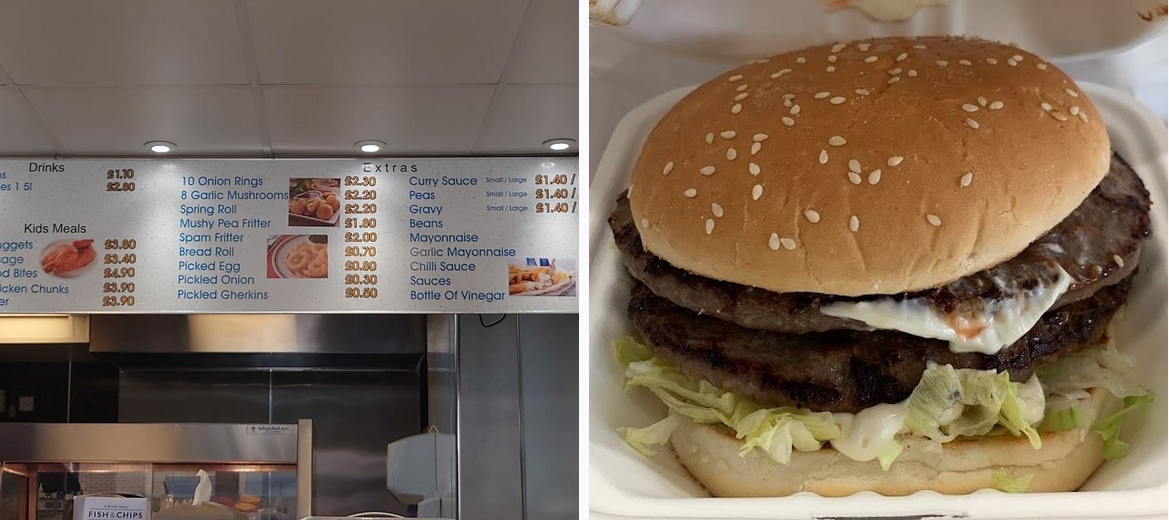 The comprehensive menu includes not just fish and chips, but an array of pies, burgers, and kids' meals—all reasonably priced under £10.